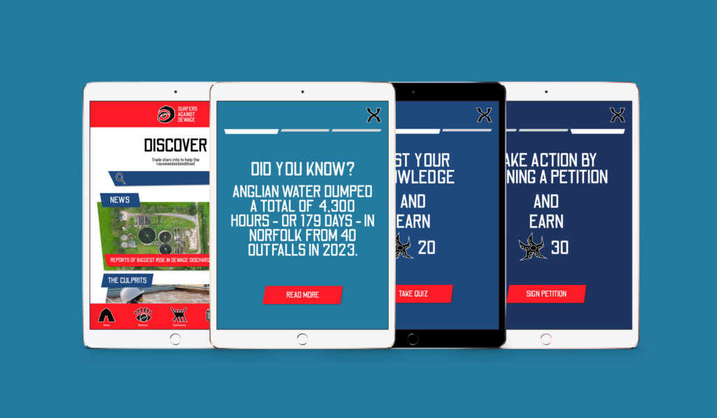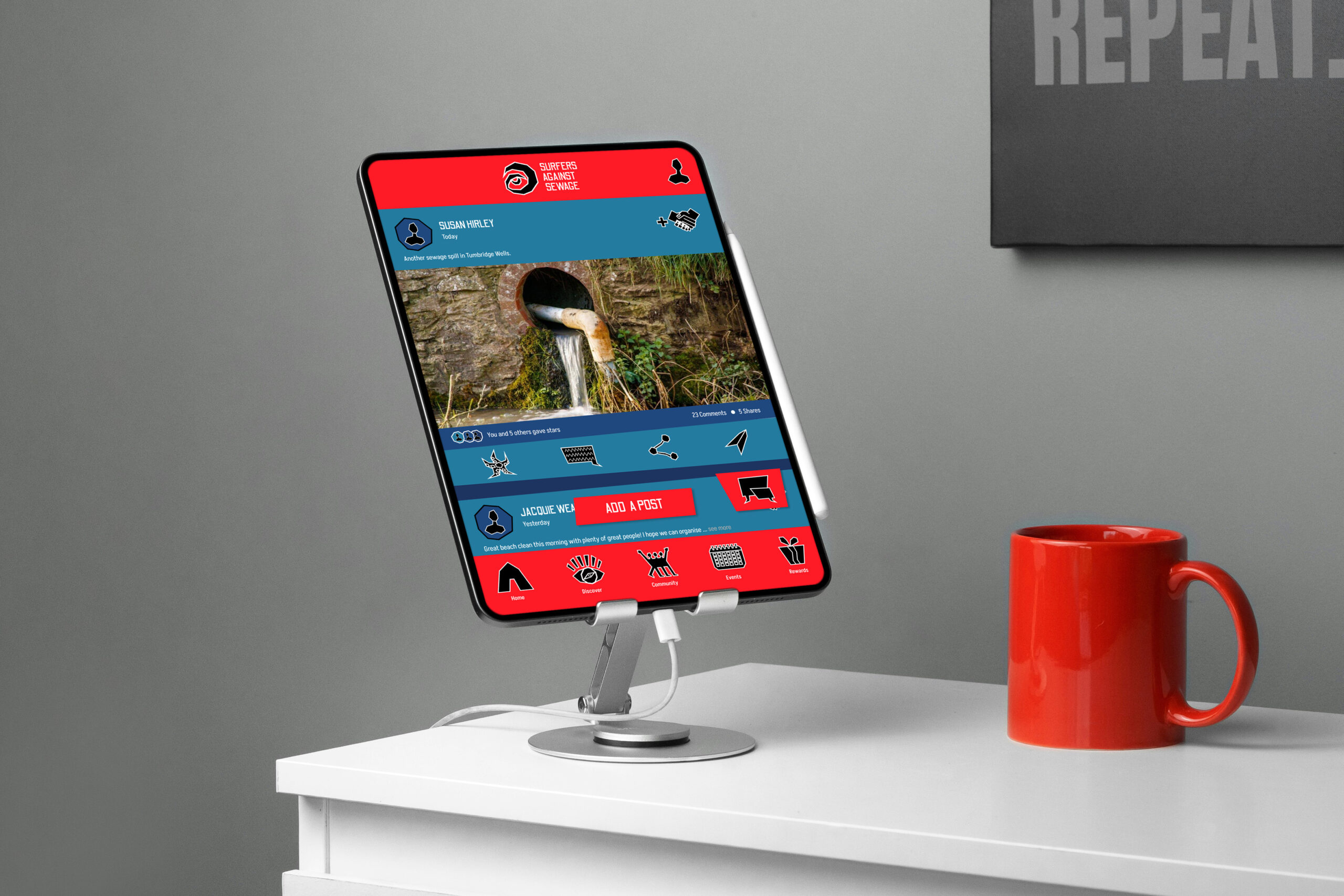 For this uni project, I created a charity campaign for Surfers Against Sewage that engages users against the ongoing issue of sewage discharge by water companies across the UK. This campaign looks to educate the public on the impact sewage is having on our waterways, connecting like-minded people and encouraging users to undertake small-steps for ecological justice. The concept raises awareness and fosters a supportive community that will help create positive change to our rivers and coastlines.